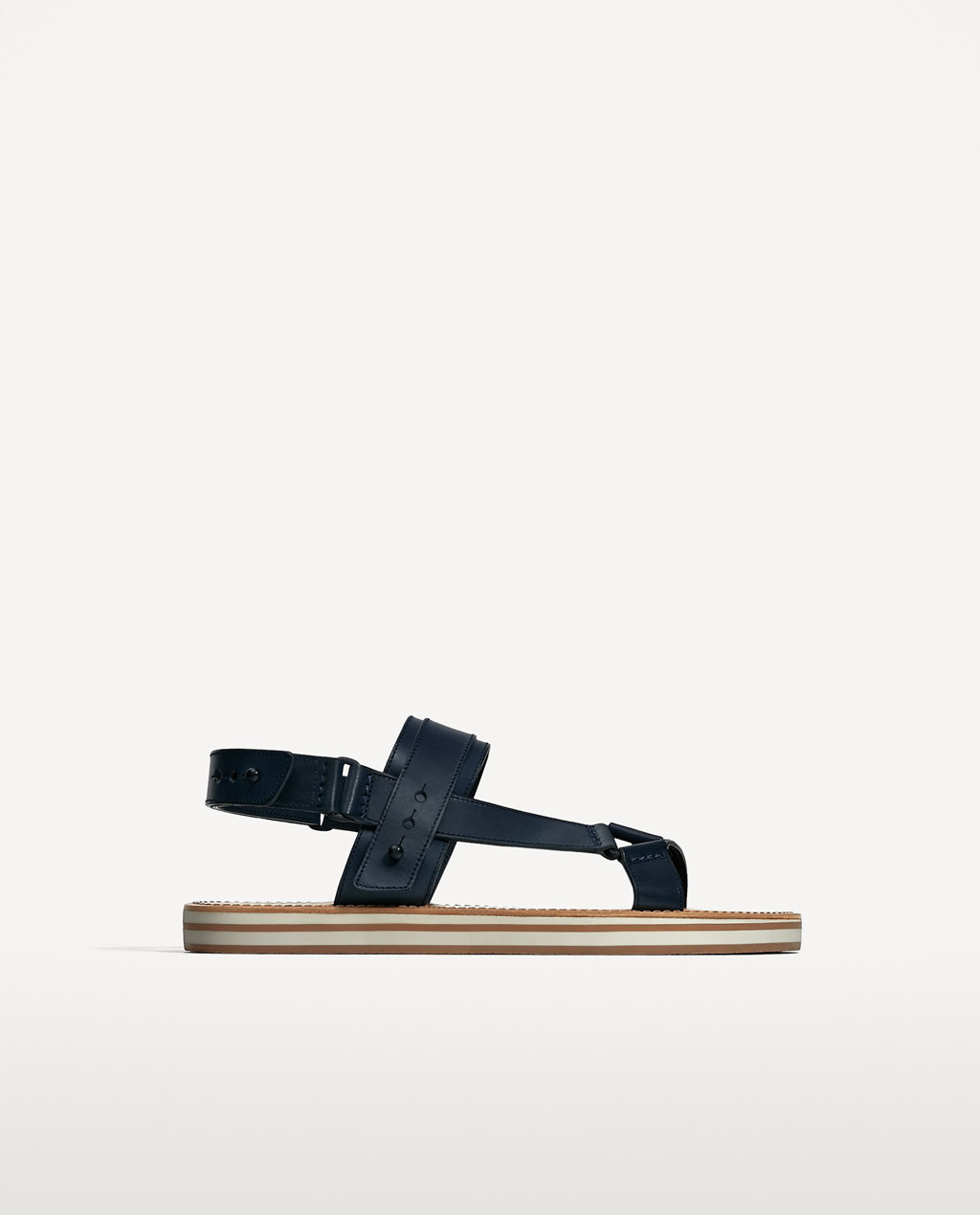 Toe-post sandals with an elasticated ankle strap and an adjustable metal buckle.
