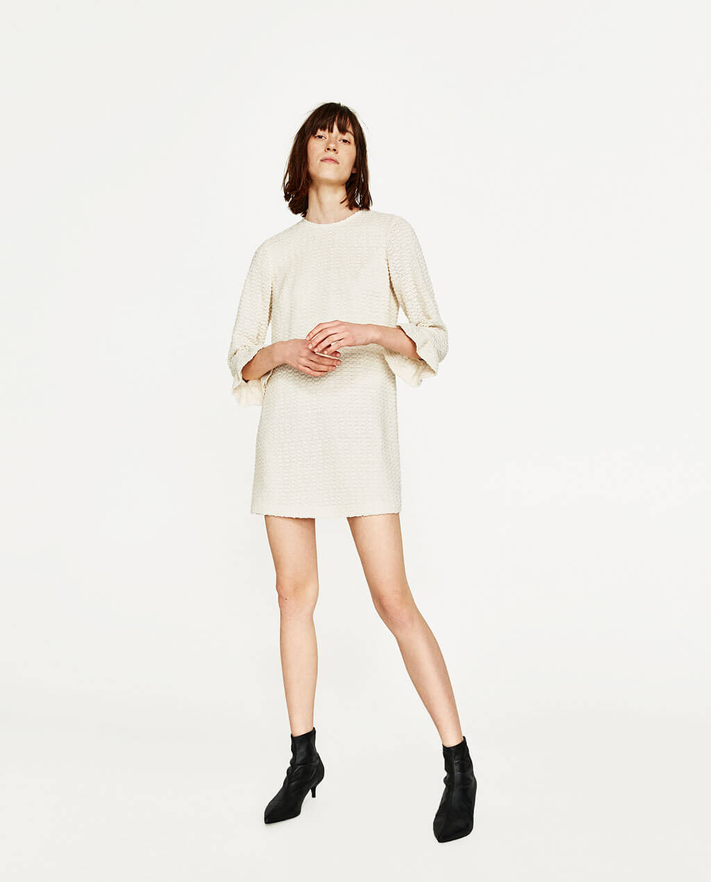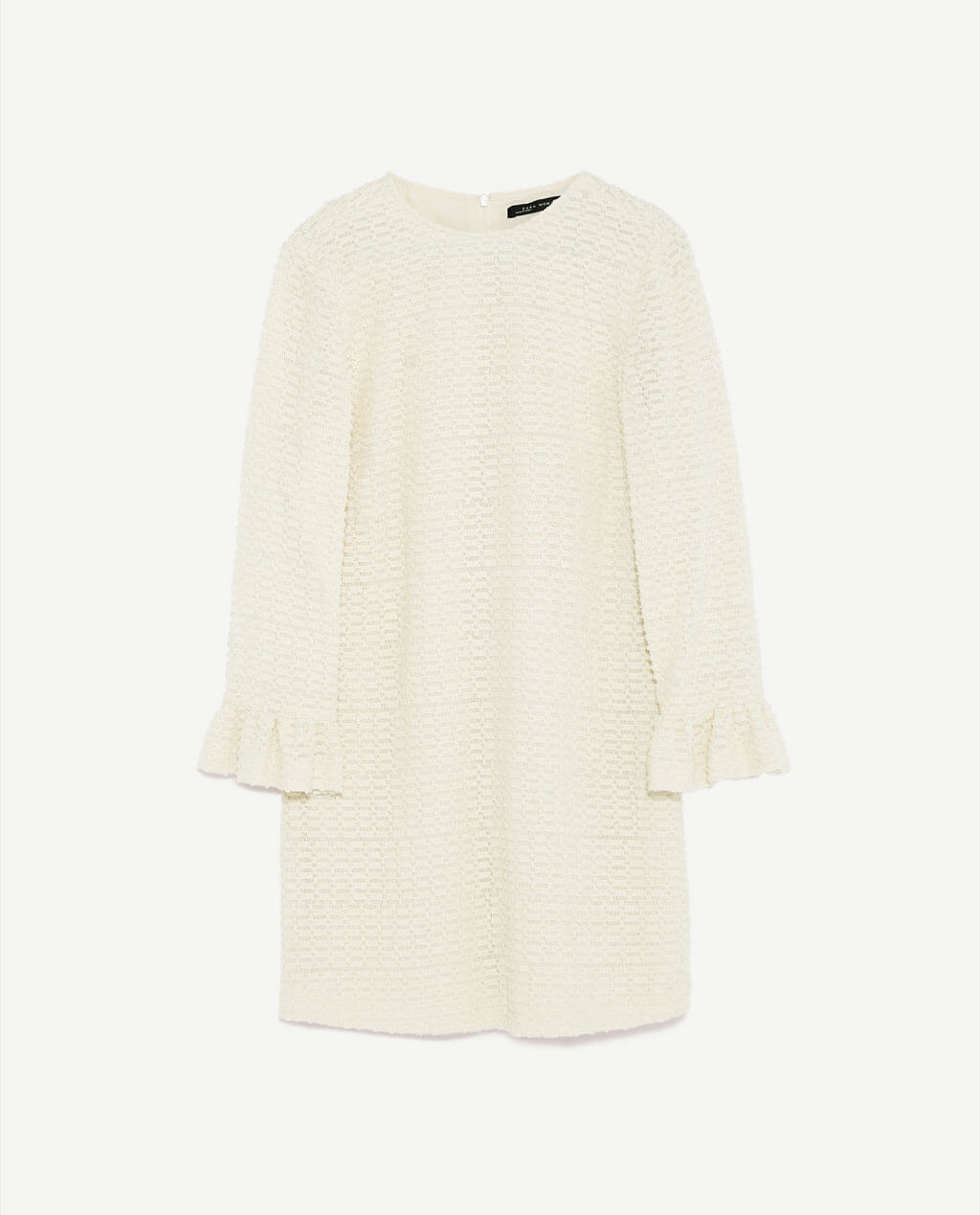 Long sleeves with narrow flounce at cuffs.