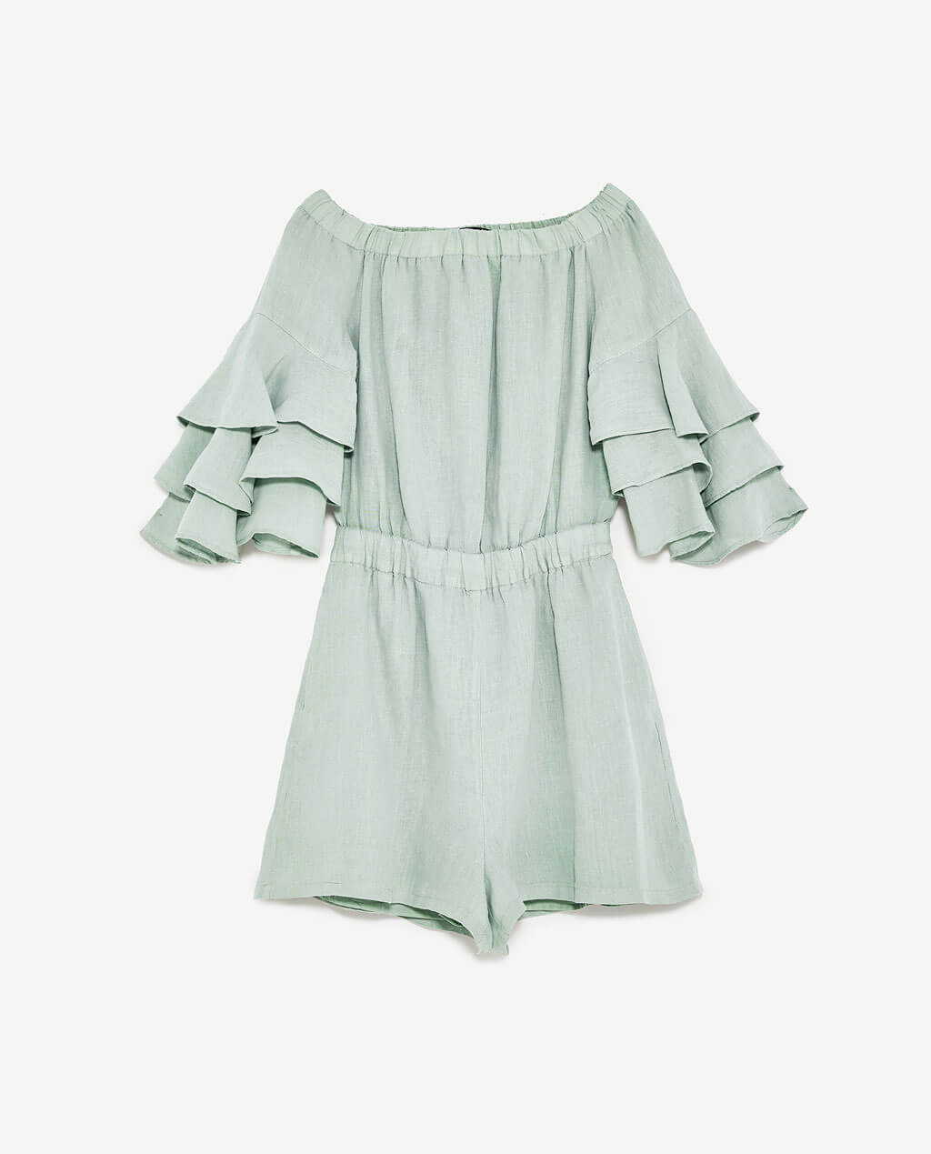 Off-the-shoulder playsuit in an airy weave with elastication around the top, an elasticated seam at the waist.